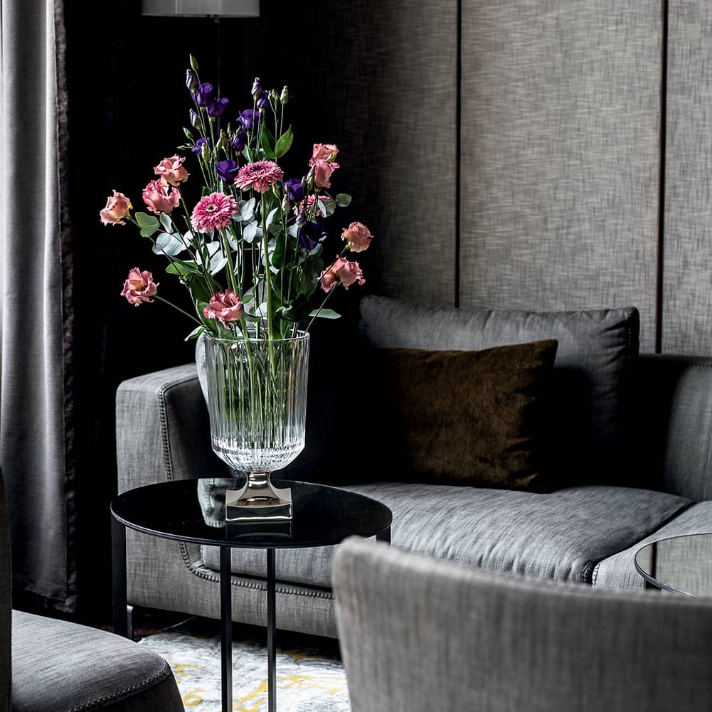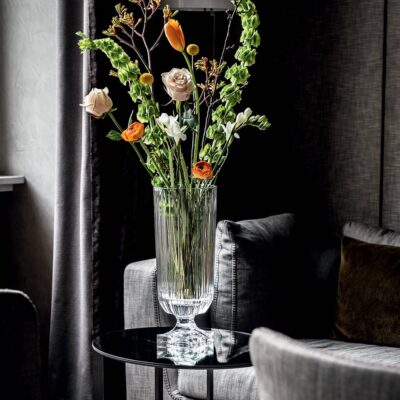 Discover the platinium Minerva vase Nachtmann. Tall and impressive, MINERVA crystal vases from Nachtmann, are designed to feature as stunning decorative centrepieces and are perfectly suited for tall rooms, grand hallways or at special events and celebrations.